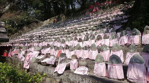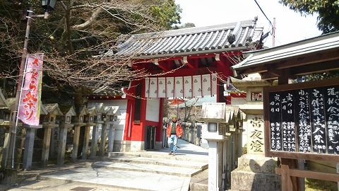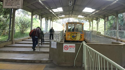 | 太子快道C 2019年3月27日 恥ずかしながら坂道が苦手なので、下山のみ徒歩のプランにしました。 恩智道を登るのを止めて、ケーブルで高安山駅(419m). に登り、近鉄バスで信貴山門に向かいました。 朝護孫子寺(信貴山寺)を観たあと、延々と続く下り坂を降りてきた次第です。それはそれで、脚に応えましたね。 信貴山門に着いてからJR王寺駅まで、8.5km / 2時間14分 ということになりました。 ![]() ![]() ![]() ![]() ![]() ![]() 聖徳太子が物部氏との戦いのとき、この山で祈願されました。四天王のうち毘沙門天(=多聞天)が現れ、勝軍の秘法を授かったということです。それが寅の年、寅の日、寅の刻だったので、寺のあちらこちらに寅がいて、いつしか阪神タイガースの守り神にまでなっているようです。戦いのあと、信ずるべし、尊ぶべし山であることから「信貴山」という名になったそうです。 ![]() ![]() ![]() ![]() ![]() ![]() ここが最も危なっかしい下り坂でした。いのししも出るそうで、片手に手頃なサイズの石を持ったまま歩いた次第です。何事もなく、無事に降りることが出来て、ほっとしました。 ![]() ![]() ![]() ![]() ![]() ![]() ![]() 斜めに「王寺駅 Oji Station」の看板あり。 |