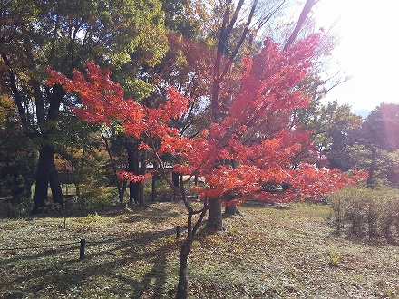 大池のほとりにモミジバフウ 1
