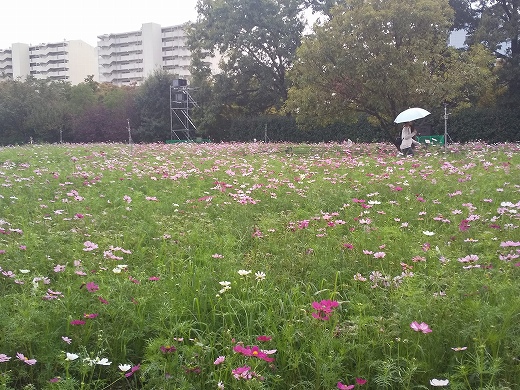 まだ満開とは言えませんが、長居植物園のコスモスを観に行って来ました。今日に限って、青空ではありませんでした。(8km/103分)