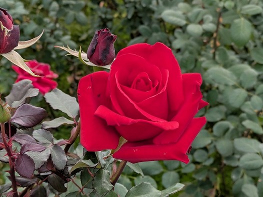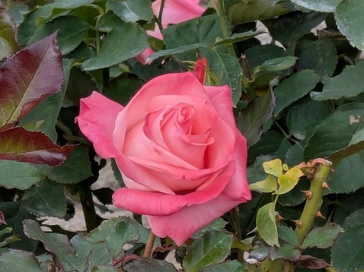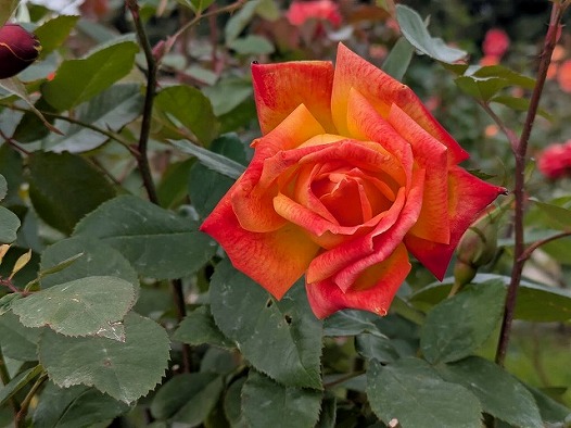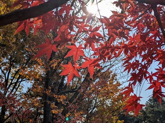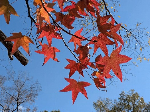 イロハモミジ、モミジバフウ、おまけの秋バラなり。