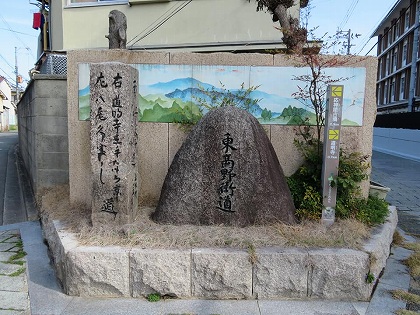 | 東高野街道D 9.1km 2021年3月7日 A 2.6q (2021年2月24日) ![]() 「安堂」(柏原市)から、東高野街道に挑戦します。大和川を越えて、南河内を歩くことになります。 ![]() 「安堂」交差点から始まります。対岸に大和川治水記念公園があり、中甚兵衛さんの銅像も建っています。「龍田古道3」で立ち寄ったところなので、写真だけにします。 ![]() ![]() ![]() ![]() 橋を渡った後も、石川沿いの整備された道が続いています。 ![]() ![]() ![]() 国府八幡神社なり。本当は、ここを左折するのが正解でしたが、わたしは元に戻ってしまいました。いえ,取るに足りない、小さなミスです。 ![]() この際ですから、国府遺跡を訪れたいとは思いましたが、わずか300mの寄り道を避けました。 (長尾街道を歩いた際に、国府遺跡を訪れました。) ![]() 近鉄南大阪線の踏切を渡り、道明寺天満宮と道明寺の間の街道を南下しています。 ![]() B 6.5km(2021年3月7日) 道明寺から歩き始めました。前半は (以前に) 体験済みなので、安心して歩くことが出来ました。 ![]() 天満宮と道明寺の間の東高野街道までやって来ました。本日のスタ―トはここからです。 ![]() ![]() ![]() 薄田隼人正兼相の墓は、ハクモクレンが目印なり。ごく近くまで来て、地元の方に「あの花のところ」と教えて頂きました。 ![]() 薄田隼人正は、道明寺の戦いで戦死しました。彼のお墓は生國魂神社に近い寺にもあります。冬の陣の際、大酒を食らって身動きならず、敵に砦を奪われてしまい、ひんしゅくを買ったことでその挽回を焦ったとか。。 ![]() 元の道に戻って、街道歩きを再開。整備された石畳の道に入ります。中央奥の山は応神天皇陵古墳。 ![]() 右 道明寺 玉手 なら 京 左 八尾 久宝し ![]() ![]() ![]() これまでに「古市古墳群巡り」「大坂の陣・戦場巡り」「古市街道を歩く」の際に訪れたので、本日が4回目です。 ![]() ![]() 誉田林古戦場は、大坂夏の陣のものではありません。 真田幸村軍はここまで来ましたが、軽く戦ったあと、古市街道沿いに平野まで退却しました。 ![]() ![]() 右 道明寺玉手山 左 ふぢ井寺大坂道 ![]() ![]() 右 大峯山 つぼさか たゑま 正面 藤井寺 大阪 方面 左 柏原 大阪 方面 ![]() ![]() 右手に白鳥神社。ここから古市駅に向かったことがあります。 ![]() 一度だけ突き当りを左折、すぐ右折しました。またまた、どんどん南下します。 ![]() ![]() ![]() 突き当りを (富田林方面に) 左折します。 国道170号線(旧道)沿いに近鉄長野線が走り、同じく東高野街道も通っています。 ![]() 国道170号線(旧道)から離れ、左の細い道に入ります。 ![]() ![]() ![]() ![]() ![]() 富田林市に入った模様。 ![]() 「喜志」町会 ![]() 道が2つあり。間違えて、修正を図って混乱。ナビの世話になりました。 ![]() ![]() 富田林「寺内町」行きは止め、喜志駅に到着しました。 かつて、貴志駅から石川を渡り、「太子」経由で源氏三代のお墓を訪ね、「上ノ太子」まで歩いたことがあります。 太子快道I (お礼参り) のときも、貴志駅から金剛バスに乗り、「近つ飛鳥風土記の丘」から歩き始めました。 ![]() もう少しですが、無理はしないでおきます。時刻はam11:50 でした。自宅に戻って昼食をとるには、頃合いの時間かと考えました。外食が難しい時節柄、仕方ないと思います。 |