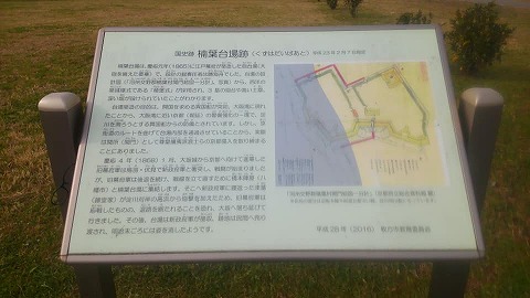 | 京快道C 2019年12月11日 宗左の辻(枚方市駅前)〜岩清水八幡宮駅 本来は12kmだそうですが、余計に歩いたことは確かで、13.9kmも歩いたようです。 ![]() ![]() ![]() ![]() ![]() ![]() ![]() ![]() 線路沿いに進み、やがて旧街道が突き当たりに達しました。お地蔵さんに、今日の旅の安全をお祈りしました。 ![]() ![]() ![]() ![]() ![]() 見晴らしのいい電車沿いの道を歩きました。このあと、道が閉ざされて(土の道に入ることができず)、適当に回り道をして「樟葉台場跡」にたどり着きました。 ![]() ![]() ![]() 入口の正面は見切塁(壁)になっており、左に向かうことになる。そこには番所あり。 ![]() 設計の総責任者は勝海舟となっています。外国船が淀川を遡ってきた時の備えですが、戊辰戦争の始まりに際して対岸の高浜台場(新政府軍に寝返った津藩)から砲撃されたようです。樟葉台場は、そもそも北(京都側)からの攻撃には備えがなく、旧幕府軍は退路を断たれるのを恐れたようです。この砦を放棄して、大坂に逃げ帰ったとのことなり。 この後も、道を間違えたようです。 ![]() ![]() ![]() 再び堤防の道に上りましたが、間違いだと気づいて、一つ下の道に戻りました。 堤防からは天王山が見えますし、サントリー・ウイスキー「山崎」工場も見えました。。 ![]() ![]() やっと「堤防に階段ある所」まで来ました。ここを右に曲がりました。 ![]() 踏切を越えます。あとは線路沿いに進むだけで、目的の駅がちかくなりました。 ![]() よかったのかどうかは住民の皆さんの声を聴くほかありませんね。 |