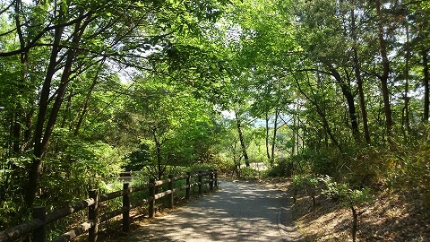 「喜志」駅前から「近つ飛鳥博物館前」行きの金剛バスに乗りました。着いたのは「近つ飛鳥風土記の丘」で、そこから森の中を歩いた次第です。緑のトンネルは今のところ、快適でございます。