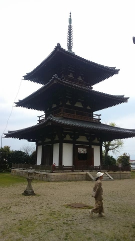 | 太子快道E 2019年4月19日 斑鳩の里 8.8km/2時間29分 法隆寺駅→法隆寺南大門→中宮寺→斑鳩神社→法輪寺→法起寺 →太子ロマンの道→法隆寺駅 ![]() ![]() ![]() ![]() 中宮寺本堂のど真ん中に如意輪観音菩薩あり。エジプトのスフィンクス、ダ・ヴィンチのモナリザと並んで「古典的微笑(アルカイックスマイル)」などと呼ばれる逸物なり。遠いので、よく分からないのが実に残念。拝観料600円は少々高すぎると思う。 聖徳太子の母親の願いにより建てられた尼寺である。 ![]() ![]() ![]() 法輪寺金堂:宝暦11(1761)年に再建された。 創建は飛鳥時代に遡る。山背大兄王が聖徳太子の病気平癒を願って建てたもの。法隆寺西伽藍の2/3の大きさだが、その西伽藍と同じ伽藍配置となっている。さすがに、こぢんまりとしていますが‥。 ![]() 法輪寺三重の塔 昭和19年に落雷で焼失。昭和50年再建されたばかり。 ![]() ![]() 法起寺三重塔(国宝):わが国最古の三重塔 聖徳太子が法華経を講説された岡本宮を、寺にせよと山背大兄王(息子)に命じたのが始まりという。 ![]() ![]() ![]() ![]() |
