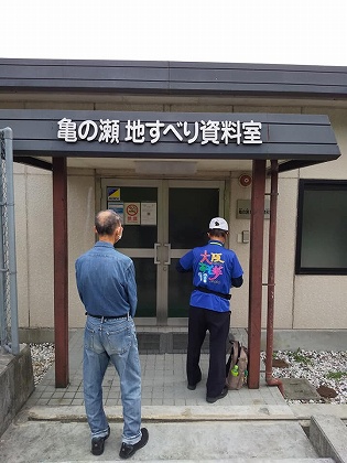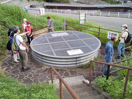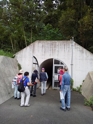 | 日本遺産 龍田古道を歩こう 1 2020年9月26日 龍田古道は「亀の瀬越え龍田道」のこと。われわれに馴染みがあるのは「亀の瀬越え奈良街道」である。 6kmばかり歩いたと思う。亀の瀬地すべり&その見学はなかなか刺激的でした。 ![]() JR 大和路線「三郷」駅に集合しました。ガイドの大森さんから、瓜破遺跡がらみのおせんべい「?貨泉」を頂きました。感謝! 酒井製菓を探してみますとも。 ガイド&参加者含めて11名でした。 ![]() 龍田神社は、全国にある風の神様をまつる神社の本宮とのこと。以前に、このそばを通りながら立ち寄らなかったところです。 ![]() 拝殿までやってきました。お賽銭はなしでしたが、わが一族の無事を祈るのはいつものことです。 ![]() ![]() ![]() なだらかな山道ではありますが、普通に歩くことができます。たまにですが、車に出会うこともありました。 ![]() 坂道を上る途中に県境がありました。龍田山のほとんどは大阪府(柏原市)に属しているようです。 やがて峠に達しましたが、峠八幡神社及び神社の前にある地蔵堂ともおさらばしました。 ![]() 亀の瀬地すべり資料室(国土交通省が管理)に入りました。展示とビデオで、お勉強しました。 ![]() 奈良県と大阪府の府県境にあたります。龍田山あるいは亀の背地区と呼んでいいでしょうか?その南部には鉄道とトンネルがあり、大和川が流れています。 地すべりが起こったあと→ 田畑の地割れ、河床の隆起、上流(王子町)の浸水があり、大阪府側には大洪水(鉄砲水)の危険がありました。 ![]() 結局、トンネルはふさがれていまい、鉄道(現在のJR大和路線)は対岸を通ることになりました。 鉄度の線路が、右岸から左岸に切り替わったわけです。 ![]() 地すべり対策工事は高度の土木技術を要し、いまなお不断の監視が必要だそうです。 @水を抜くA土をとるB土を止める のうち@に絞ってみました。亀ノ瀬排水隧道(1号排水トンネル)に入りました。なお、排水トンネルは全部で7本あり、その総延長は7.2qに達するようです。 ![]() 長さ1qありますが、見学できるのは200mです。下には地下の水を集めた水路があり、途中の側面では、すべり面(乾いた硬い岩盤と濡れている乱された地層帯)に触れることができました。 ![]() ![]() その最深部は地すべりで崩壊した跡が残っています。壁面はイギリス積みの煉瓦です。明治期の土木遺産です。 ![]() 亀岩(亀石)があります。この辺りを亀の瀬と呼ぶ元になっています。 別の写真でよく見ると、亀の頭があり、広くて大きな亀の甲羅の部分がでっかく見えているようです。 ![]() ![]() 地すべり対策 @地下水の抜き取り:集水井54基・排水トンネル7本・排水路 Aすべる土を直接止める:深礎工‥すべる面より地下深くまで、170本を設置した。 ![]() 15号集水井は直径3.5m深さ17m 集水井は全部で54か所にあり、最も深いものは58mです。 ![]() |