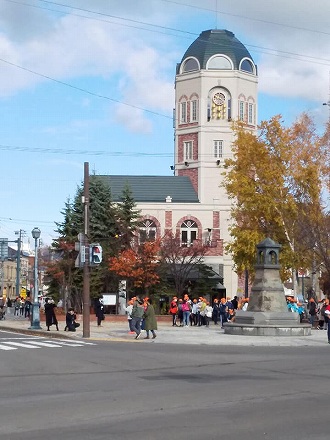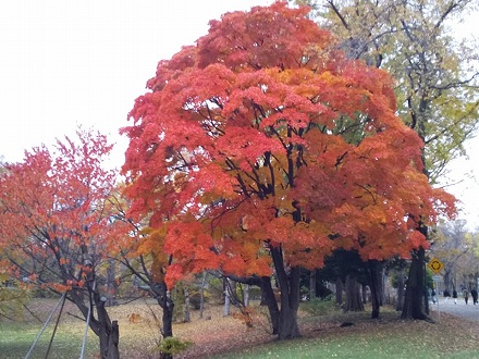 | 札幌の街を歩く (10km) 2021年11月3日 本来は9月末に紅葉の大雪山を歩くはずでしたが、コロナ禍で中止になりました。そして今、冬が来る前に札幌を訪ねることになりました。 南の札幌時計台まで行ったときはほぼ午後4時でしたが、もう夕方になっていました。北の街は、夜の訪れが早いことを思い知ったわけです。 ![]() 北海道大学初代総長佐藤昌介先生です。クラーク先生の像はもっと奥にあり、それは後回しとなりました。 ![]() 北13条門から入ったところにあるイチョウ並木を欠かすことはできません。 ![]() 真ん中は車道になっており、自由に入ることができないのが残念なり。 ![]() ![]() 青森で馴染みになったカシワバカエデが、山のように積もっていました。 ![]() 元の北九条門 (正門) まで戻り、クラーク像を探しました。真っ赤に萌えるカシワバカエデが鮮やかです。 ![]() ![]() ![]() ![]() ![]() 札幌時計台 (旧札幌農学校演武場) は思ったよりも大きく、立派でした。200円を払って、見学しました。 ![]() 赤い星マーク(御稜星)は、北極星がモチーフのようです。全て開拓使のシンボルマークです。五稜郭もそこから来たのでしょうね。 ![]() ![]() 時計の動く仕組みがよく分かります。ふりこで動きます。 ![]() 夕食にはジンギスカン料理をいただきました。ラムのリブロースは全く臭みがなく、美味しくいただきました。 |