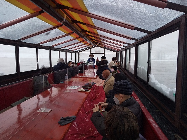 | なかなか‥いい旅 2022年12月15日 さて、山形県を巡る旅の二日目です。天候に左右されるのは致し方なことですが、蔵王ロープウェイが動くのか、動かないのかがなかなか分からず。。 ホテルのロビーで待ち続けたのには困りました。結局、山頂駅まで上ることができたのは、奇跡のようなものでした。 このあと、銀山温泉や最上川舟下りをこなしたあと、酒田では既にpm5:00を過ぎていたので、観光どころではなかったのが残念なり。(4q) ![]() 蔵王温泉で泊まったホテルは、本来スキー客相手のお宿のようです。 ![]() ![]() ![]() 40分ばかり待ったあと、ようやく「蔵王ロープウェイ」の蔵王山麓駅855mにやって来ました。 ![]() ![]() ![]() ![]() そこで撮った写真がこれ。雪の積り方が半端でなくなりました。 ![]() ![]() ![]() 銀山温泉の入口は、この白銀橋から。 雪はもちろんのこと、川のように流れる水にも参りましたが、ときおり滑りそうになる雪道には大変困りました。トレッキングスタイルの靴を補うアイゼンを持参しなかったのが仇となりました。 ![]() ![]() よく登場するのが、国の登録文化財となっている能登屋。真ん中の建物です。 ![]() 川の両側を写してみました。温泉街全体が「千と千尋の神隠し」のモデルになったようです。 ![]() ![]() 長い長いホームごたつのようなものは、たいへん温かくて快適でした。 銀山温泉、こたつ船、酒田は「おしん」がらみの話になりましたが、船頭さんの発音では「おすん」の方が正しいようです。 ![]() 窓ガラス越しに撮りましたが、窓を開けても構いません。水深は10mを超えるそうで、実にゆったりとした流れでした。 ![]() 雪深いところから、雪のない海岸部(酒田) までやって来ました。 「山居の倉庫群」の見学は、夜になったので、ちょっと難しくなりました。長らく庄内米の貯蔵庫として利用されてきましたが、今年の9月に、その役割を終えたようです。 |