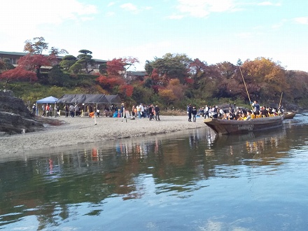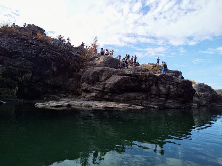 水量が足りないので、ライン下りは出来ず、岩畳周遊に切り替えになりました。本当の意味でのリベンジになりませんが、致し方なし。。(その分、返金あり)