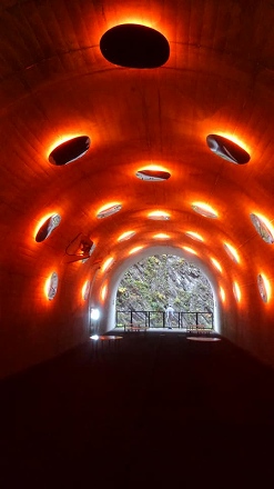 日本三大峡谷の一つである清津峡渓谷(十日町市)を観賞するために造られたトンネルに入りました。以前に、落石事故があったためだそうです。トンネルの長さは往復で1.5km なり。