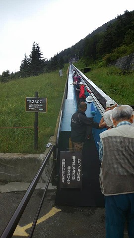 | 志賀高原ショートステイ3日目 2019年8月20日 朝、青空が広がっているのをみて撮りました。 今日は、横手山(2,307m)、草津温泉、旧軽井沢銀座などへ出かけます。残念ながら、予報では雨になるということです。横手山が晴れておれば、幸いなり。 ![]() ![]() 横手山スカイレーターに乗ります。斜めに上っていく「動く歩道」です。なお、2307m は頂上の高さです。 ![]() どんどんガスが立ち込めていくので、スカイレーターの上から、早目に写真を撮りました。 ![]() スカイレーターからリフトに乗りかえました。ますます霞んで来ました。 ![]() ![]() ![]() ![]() ![]() ![]() 長野県と群馬県の境にあるのが渋峠(2,172m)です。ここの気温が16℃ですから、山上(2,307m )はもっと低かったかも。。寒うございました。夏に信州を訪れる値打ちが証明されました。 ![]() これまた、わたしの大好きなニッコウキスゲなり。伊吹山、車山、佐渡島、礼文島でも出会っています。佐渡島ではトビシマカンゾウ、礼文島ではエゾカンゾウと呼ばれています。 ![]() 草津温泉の「湯畑」真ん中辺りです。高校時代に来たはずですが、全く記憶から抜け落ちているようです。標高1,156m 最高気温が22℃ ![]() 「湯畑」の一番下です。【かおり100選】に選ばれたとか。。温泉の硫黄の匂い、のようです。決して、刺激臭ではありませんでした。 ![]() 雨が降りだしたので、屋根のある「足湯」で休憩中。「ちちや」が、温泉まんじゅうの老舗とのこと。 ![]() ![]() ![]() 軽井沢に移動しました。まだまだ旧軽井沢銀座は混雑しています。予報では最高気温が25℃とか。 ![]() ダ・ヴンチに向かったつもりが、フランスベーカリーに留まってしまいました。 ![]() ![]() お買い物の店。スープ、ジャム、ドレッシングを購入しました。 ![]() ![]() この店の前で、急に激しい雨が降りだしたので、中で雨宿り & 買い物なり。 ![]() 小降りになったところで移動しました。おかげで、わたしはモカソフトを食べ損なうはめに。次の機会にはリベンジする予定です。次があるかどうかは約束できませんが‥。 ![]() この日も志賀高原に泊まるわけですが、上信越自動車道で帰りました。「千曲川さかきIC」で休憩しました。千曲川を撮ったつもりですが、分かるでしょうか? ![]() 信州中野から志賀高原に向かいましたが、その途中でバスがストップ。1時間あまり待たされて、ホテルからの迎えの車に分乗して事なきを得ましたが、こんなことは初めてのことなり。 |