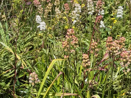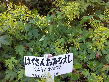 | 高山植物園 (東館山) 2023年8月30日 今日は自由行動の日。オプションのA 横手山スカイレーターから渋峠、B 小布施散策は、どちらも体験済みなので、東館山の高山植物園、自然探勝コースのトレッキングと 決めていました。午後は雨という予報のため、予定を変えざるを得ないということに。 @ホテル近くのせせらぎコースをほんのちょっとだけ体験 A発哺温泉まで歩き、東館山ゴンドラリフトで山頂の高山植物園へ B蓮池の周りを歩き、志賀高原山の家で昼食、買い物をしてホテルへ こんなときに限り、雨はなかなか降らないようで御座います。明日、明後日も〈ハイク初級〉となっていますから、問題ないかな。(6km) ![]() ![]() ![]() ![]() 高天ヶ原から東館山に登るサマーリフトはお盆あたりの一週間でおしまい。残念! なお、ここから東館山まで登山するお仲間がいました。かなり急な上りが続くようで、大変だったのでは。ゴンドラで登ってお花畑の散策が終わったときにお仲間に会いました。 あとで、上りに90分かかったと聞きました。感動! ![]() ![]() 発哺温泉への道の最後で迷っているときに、無料送迎カートに乗せていただきました。 ![]() 7分で山頂駅に到着。パンフレットはお花畑の案内でした。8月末なので、花は諦めていましたが、割りと咲いていたので幸いなり。 ![]() ![]() ![]() ![]() ![]() ![]() ![]() ![]() ![]() ![]() ![]() ![]() ![]() ![]() 真下に見えるのが大沼池。4年前に、ガイドさんとともに大池コース10kmを歩きました。高低差360mで、大変疲れたことを記憶しています。 ![]() 発哺温泉ゴンドラリフト駅まで降り、ありがたいことに無料の送迎バスで〈志賀高原山の家〉へ。隣の蓮池を一周しました。 ![]() ハウチワカエデ |