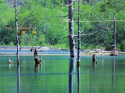 名古屋駅構内で見た上高地、大正池と思われます。秋にはどうなっているか、楽しみです。