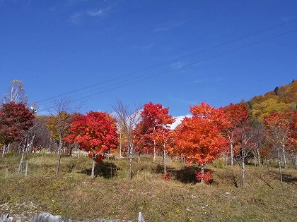 新穂高ロ―プウェイ駐車場の紅葉と青い空です。