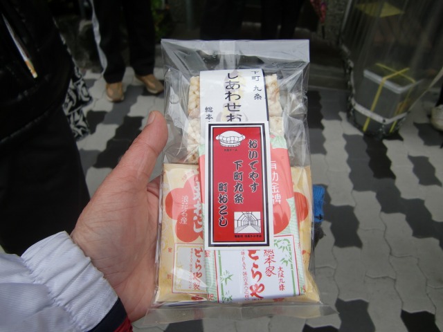 | ここは豚まん工房「しょうき」で、ほかほかの 豚肉入りととたか菜入りの2つを戴きました。ちょっと小振りなので、食べ歩きには最適です。 |