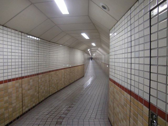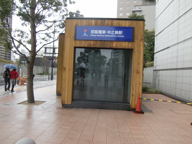 | 最後に中之島西公園あたりで解散しました。われわれは、京阪中之島線に初乗車して、天満橋で乗り換えて帰宅しました。 こぢんまりとした駅舎ですが、地下を通っているんで本体は地下にあります。あはは‥ゆがんで見えますが、腕次第です。 |