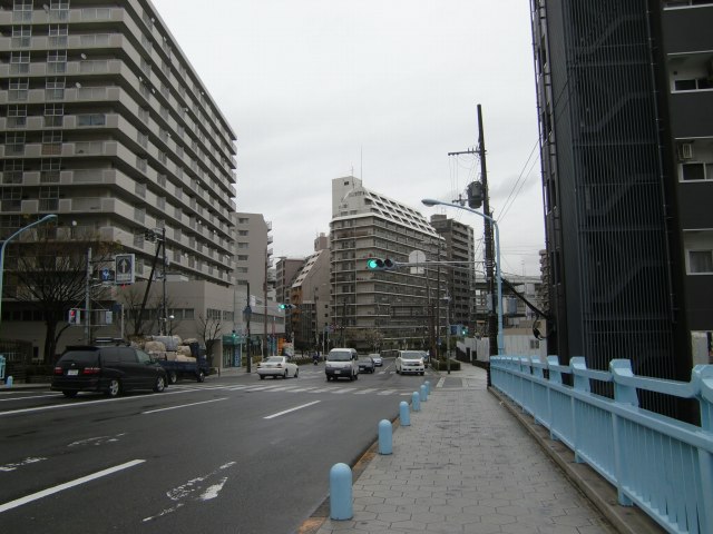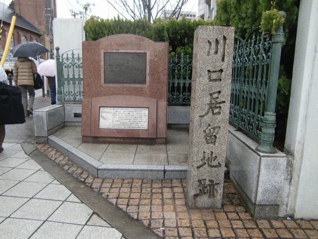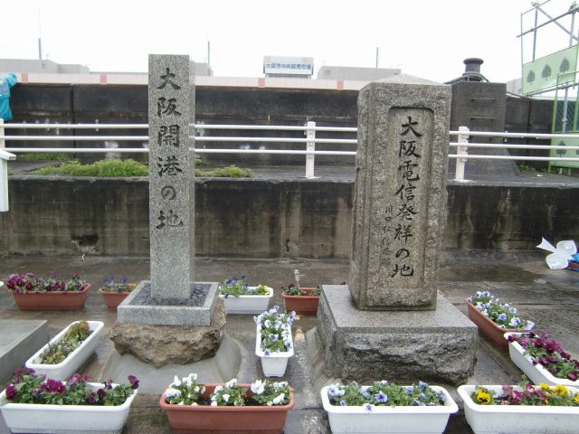 明治3(1870)年に川口電信局が設置されました。対岸の中央卸売市場が見えています。