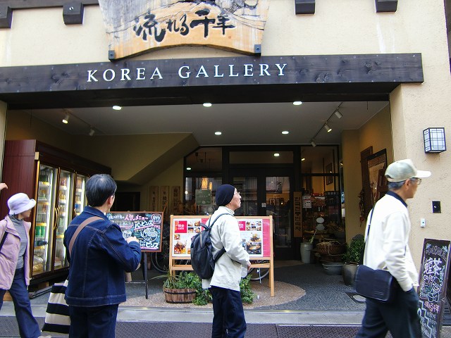| ちょっと有名な「流れる千年」。一階の店舗では韓国製の多くの民具を売っています。 |