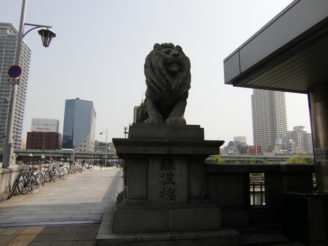 | 難波橋が「ライオン橋」とも呼ばれる由縁のライオンの彫刻です。 |