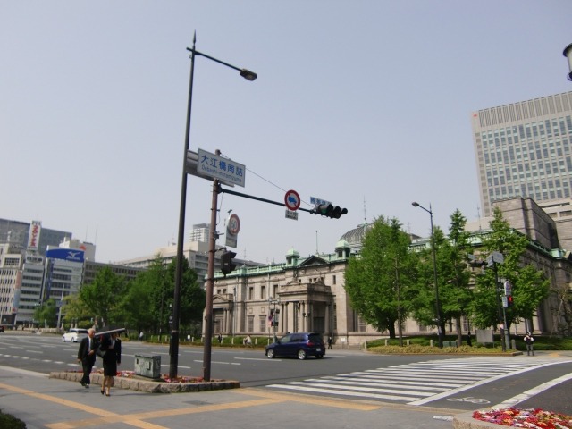 | 大江橋南詰。ここで、左折します。もちろん、大阪市役所前を通ることになります。 |