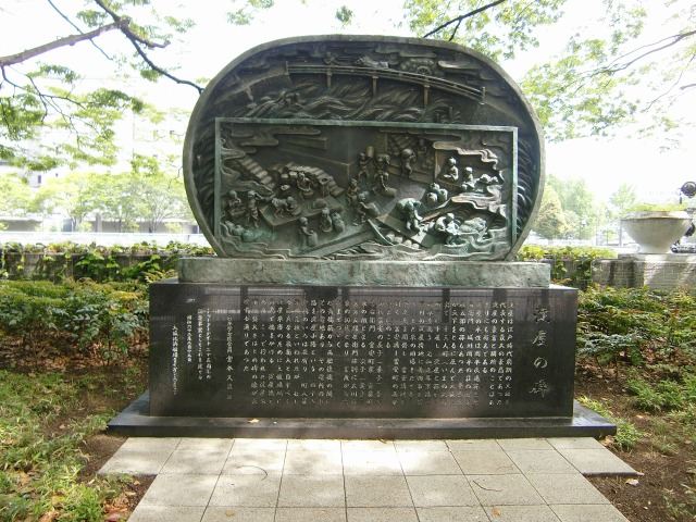 今日はその続き、第4段として、天満橋から道頓堀まで歩きました。とりあえず、折り返し地点までのハーフを 歩き切ることができました。松尾芭蕉終焉の地を探しましたが、駄目でした。 「南御堂」前の緑地帯だったようです。(事前にガイドブックを読んでおくべきでした‥) |