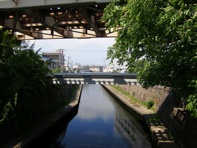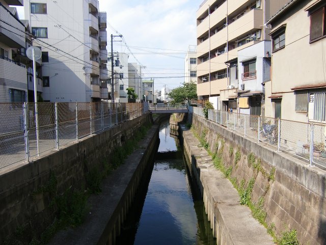 国道25号線(奈良街道)の地下を通り抜けたばかりの今川の流れである。 まもなく、駒川と繋がり、やがて新平野川に合流する。