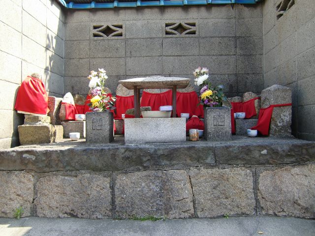 今川に架かる五輪橋を渡ったところ(右岸沿い)にある五輪塚である。大阪夏の陣で桑津は激しい戦場となり、この地で 豊臣方の侍大将・柴田権十郎正俊と徳川方の蜂須賀九郎衛門が死闘を繰り広げた。権十郎が九郎衛門の首を討ち取ったが、 自らも重傷を負い、自刃した。住民が2人を供養し、2つの五輪の塔を建立したが、1基(九郎衛門墓)は行方不明をな ったとのことである。