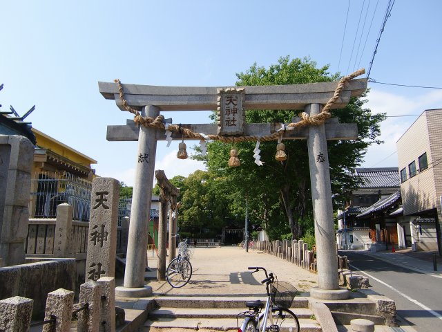 桑津天神社鳥居。現在、参道は公園の一部になっている。