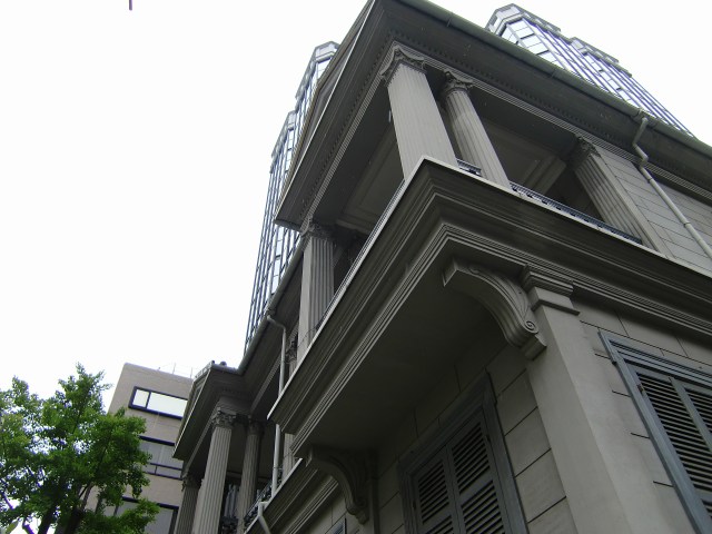 コロニア風のバルコニーが特徴の「15番館」は、震災後に再建されたものだ。