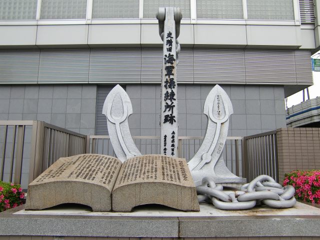 1864年軍艦奉行・勝海舟によって開設された士官学校の地。坂本龍馬や陸奥宗光、伊東祐亮らが学んだ。