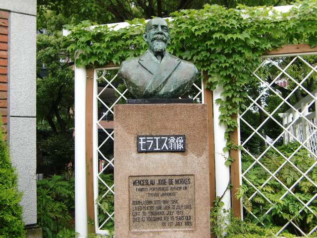 ウェンセスラオ・デ・モラエス(1854〜1929)はポルトガルの元軍人、文豪である。 明治22年(1889)35歳のとき、私用で初めて神戸の地を踏んだ。 その後、二度日本を訪れ日本の美しさに心をひかれた。 海軍中佐になってから日本移住を決心し、本国からの帰国命令に反して、明治31年から神戸に住むようになった。