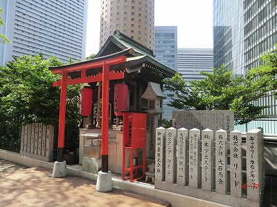 その分、茶屋町あたりが追加されましたが、既に行ってたところでした。JR新駅ビルも、見所はほとんどありませんでした。写真は、最近よく利用している駅前第二ビルの2階部分です。「徳兵衛大明神」と緑地帯です。蜆川のほとりにあった祠を徳兵衛と伝えられている方が 修理し、やがて立派な祠になったとのこと。いつの間にか、祠はなくなってしまったが、駅前ビルの有志が祠を再現したということです。 ガイド氏によると、密かなデートコースだったようです。