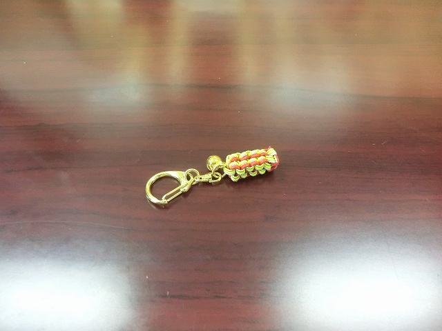 水引きの小物作りに挑戦しました。わたしの作品ですが、一部ミスがありますが、詳細は内緒です。 このキーホルダーをバッグに取り付けました。