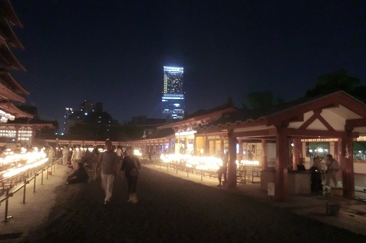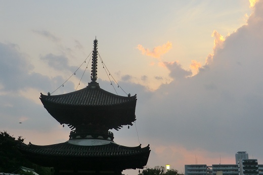 | 「盂蘭盆会万灯供養・千日詣り」の四天王寺へ 2015年8月9日 〜この日にお詣りすれば千日詣ったのと同じ功徳があるという〜 大阪あそ歩の夏バージョンでした。日頃全く信心深くない訳ですが、ともあれ、夜の四天王寺さんへ。 お盆(盂蘭盆会)は先祖の供養をする日ですから、余計なお願いなどしない方が良さそうです。 でも、9,10の両日にお詣りすれば千日分に当たるということで、よさげな日でしたが、それで済ますわけにはいかないようです。 まずは様子を確かめるために行ってきた次第です。 ![]() 6時半スタート。夕闇迫る天王寺七坂の一部を歩くはずでしたが、雷雲が迫ってきたために、それは省略しました。愛染堂勝鬘院(愛染さん)・多宝塔のバックに、夕陽が落ちようとしています。 ![]() ![]() 亀井堂では経木流しが行われています。回向(供養)を済ませた経木を流せば極楽往生が叶うといわれています。写真撮影は厳禁なり。 ![]() ![]() ![]() |