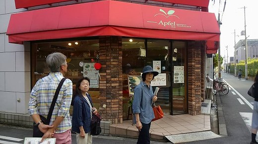 副題は「リタとマッサンのまち・帝塚山を往く」ということでいいでしょうか?ガイドはお馴染みの山田さんと奥様でした。 竹鶴夫婦住居推定地から始まり、帝塚山学院、帝塚山古墳、高谷家住宅、万代池(正しくは「ばんだいいけ」と読むそうです)から、 最終的には摂津酒造跡地まで訪れましたが、その間に、バルの缶バッジを戴き、帝塚山三丁目の彩菜でケーキと紅茶を食し、アッフェル帝塚山の塩パンもお土産として戴きました。 参加費1,500円がほとんど返却されたような具合でまことに心苦しく、その分ありがたい思いをさせていただきました。 解散後、住吉及び塚西界隈でお店のハシゴをさせていただきました。