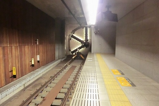 京阪中之島線「中之島」駅の行き止まりには、シールドマシンが設置されている。中之島線がさらに延伸するという話もあるそうだ。