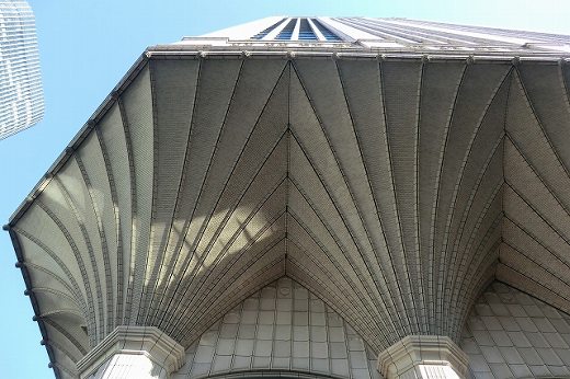 柱の上部に傘のような絞り。下部を絞って通路を確保するという構想が素晴らしいと思う。