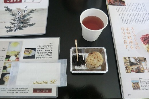 神宗で、まことに小さな、おにぎり&昆布、お茶を戴いた。