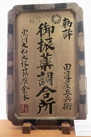 初代田邉屋五兵衛、「たなべや薬」が評価され、朝廷から「黒川大和大掾(ダイジョウ)藤原金永」の称号を授かる。