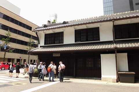 | 船場のメインストリートは堺筋だった 2017年5月1日 「大阪あそ歩」2017年秋のバージョン第3段なり。 わたしには、街路樹のプラタナスが気になりましたが、まだまだ葉っぱの出始めというところでした。 歩いた距離も短く、2時間も経たないうちに解散となりました。 ![]() 大阪俵物会所跡 銀や銅の流出を防ぐために清貿易には煮海鼠や干しアワビ、フカヒレなどを俵詰めした「俵物」が用いられるようになった次第です。 ![]() 新井ビル 旧報徳銀行大阪支店。設計は河合浩蔵。2005年(平成17年)に、五感北浜本館がオープンしました。 ![]() 高麗橋野村ビル 野村財閥の持株会社である野村合名の地所部が建てた最初の貸ビル。設計は安井武雄。1階にはサンマルクカフェが入っています。 ![]() 三井呉服店跡 三越百貨店なるものは全て、大阪から消えてしまったようです。 ![]() 軒切りされた小西儀助商店。三階は関東大震災後に取り壊されました。 ![]() 平野町2丁目のランドマークでございます。 ![]() 伯園書院は駐車場となり、跡形が残っていません。 ![]() 野村銀行→大和銀行→りそな銀行ビル 右端の建物は、白木屋百貨店があったところ。大阪進出を止めて、東京に戻ったようです。現在の東急百貨店に繋がるとのことです。 ![]() このお店にはくまもんが時々現れるそうです。残念ながら、わが孫は「あぱぱ」しか分からないと思います。 |