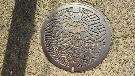 マンホールのフタ :「三十石船」に近づく「くらわんか舟(茶船)」