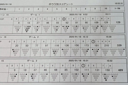 | 2025年1月18日 午前にボウリングの練習、午後は大和川堤防を歩きました。いつものことです。(8km/104分) ![]() まとまりました。久しぶりの200超えでした ![]() 3ゲームとも10フレがよかったです。 ![]() |