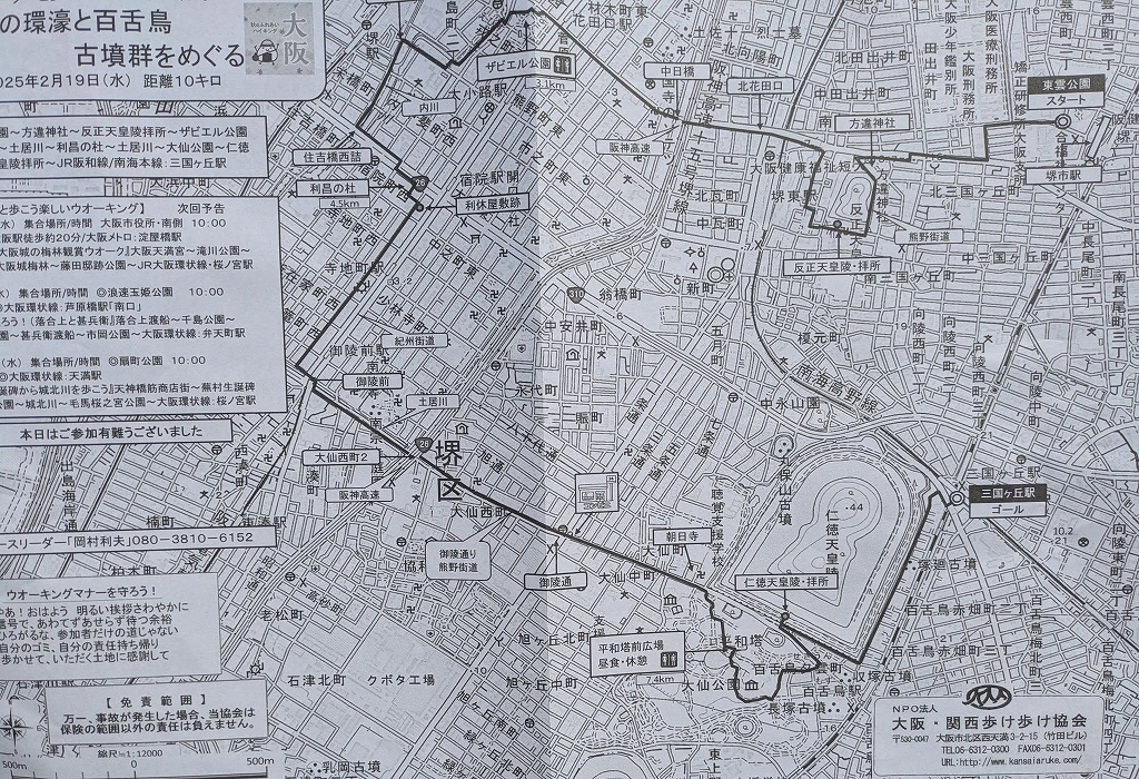 MAP![]() 堺市駅から長尾街道を西に歩き、ザビエル公園へ。環濠沿いを歩いて、御陵通から大仙公園へ。履中陵古墳を一周することがなかった分、楽なコースでした。 |