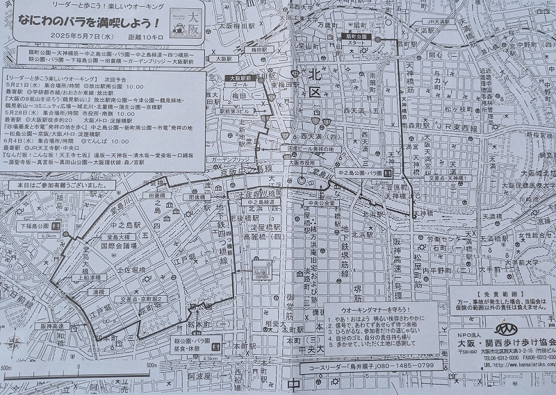 | なにわのバラを満喫しよう 2025年5月7日 リーダーと歩こう楽しいウォーキング なにわのバラを満喫しよう 10km+おまけ(5km) 7日まで待たず、もう少し早く中之島バラ園を訪れるべきでした。肝心の「ダイアナ, プリンセス オヴ ウェールズ」の花が重さに耐えかねて、地に落ちる寸前でした。。 それはそうと、歩いている途中でお腹が痛くなる病に遭ってしまい、参りました。たかが10kmなんですが、困りました。。 ![]() ![]() ![]() ![]() ![]() ![]() ![]() ![]() ![]() ![]() ![]() ![]() ![]() ![]() ![]() ガーデンブリッジを渡り、大阪駅前がゴールでした。 |