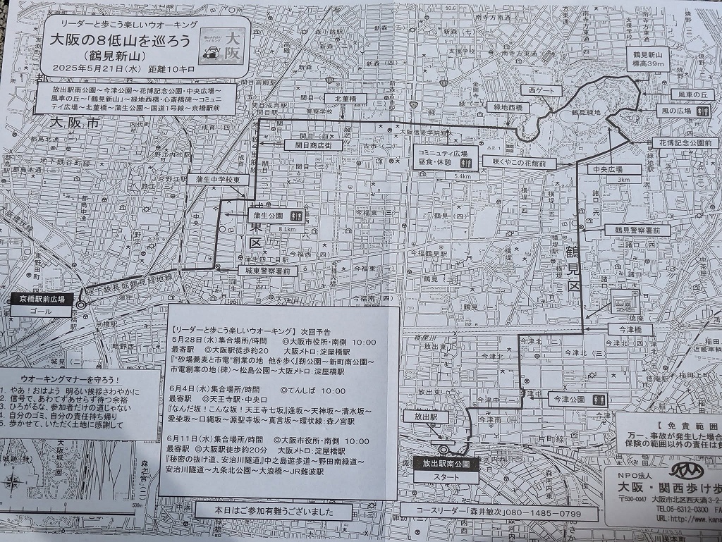 | 鶴見新山 2025年5月21日 リーダーと歩こう楽しいウォーキング 大阪の8低山(鶴見新山)をめぐろう 11km+おまけ(3km) 5月は夏の始まり。昨年はおなかが痛くなったり、ぼおっとして電柱に顔をぶつけたりしましたが、今年はそれが無くなった分だけマシでした。 ![]() ![]() 今津公園から真っすぐ北に進んだところに鶴見緑地公園があり、いのちの塔が迎えてくれます。 ![]() その向こうに、いのちの塔あり。 ![]() ![]() ![]() よく見ると、遠くにあべのハルカスあり。 ![]() 今回は省略させて頂きました。。 ![]() ![]() ![]() ![]() コミュニティ広場で昼食休憩。 |