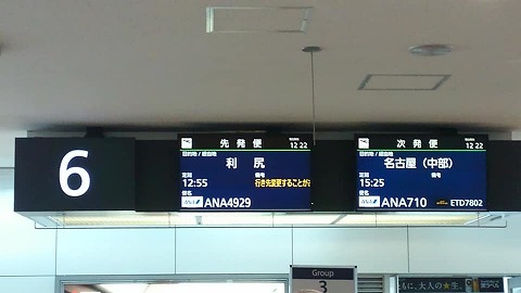 新千歳空港で乗り換えます。ただし、利尻行きは「行き先を変更することがあります。」