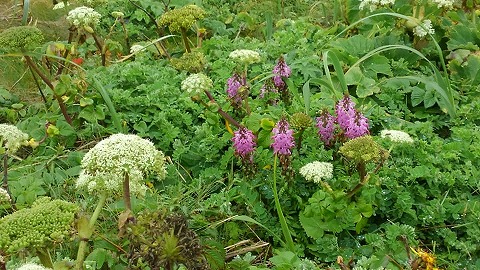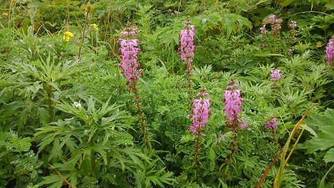 イブキトラノオ。向こうに見えるは利尻島。残念ながら、利尻富士は見えませんでした。