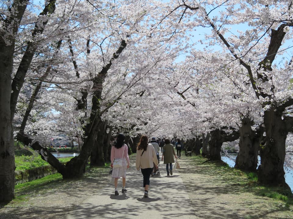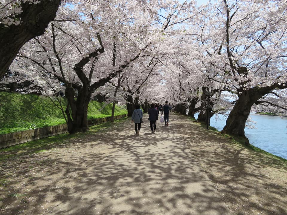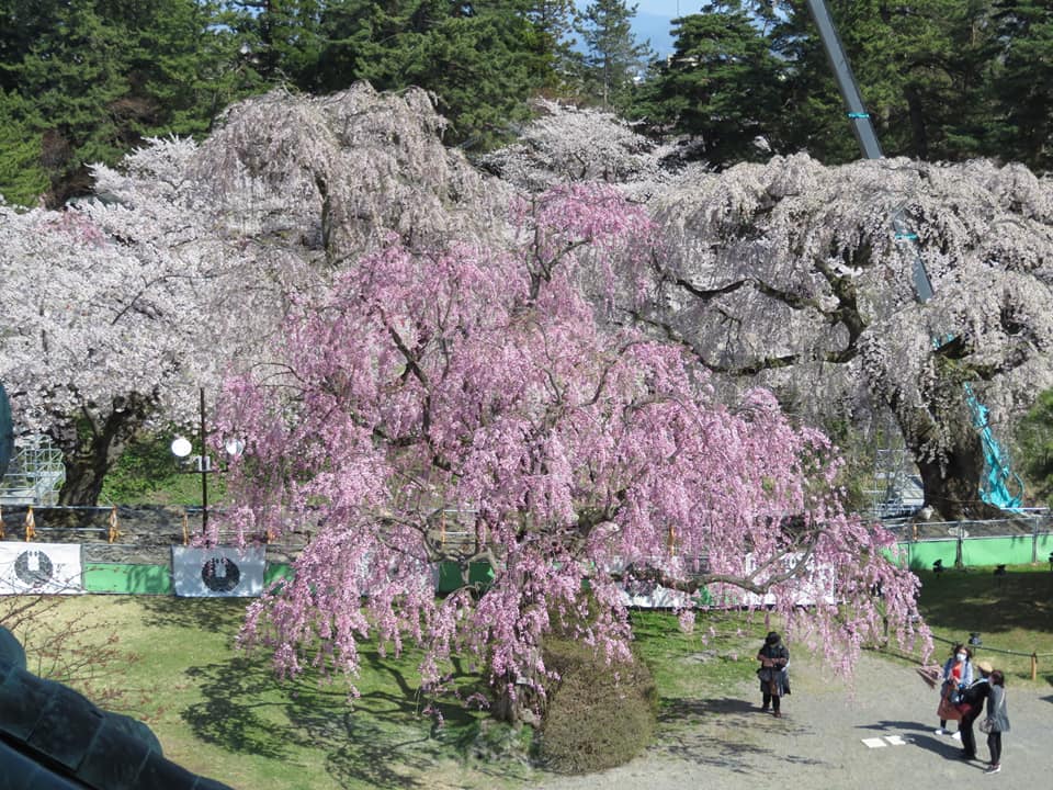 | 弘前公園のサクラ 2021年4月22日 十和田湖、八甲田・雪の回廊を経て、本命の「弘前公園」へ。満開のサクラでございました。大阪城公園も、毛馬桜之宮公園も全く敵わないと思いました。おまけの岩木山神社にも参りました。(8km) ![]() ![]() ![]() そのときは、雨の中、黄葉の中、奥入瀬渓流を歩きました。この界隈 (石ヶ戸) はゴ―ルしたところです。春に訪れるのは初めてなり。 ![]() ![]() 弘前公園にやって来ました。下乗橋は、本丸への入口に当たります。橋の右側で石垣の工事がなければ、絶好の写真ポイントでした。 ![]() 本丸を出て、西濠沿いの桜のトンネルからスタートしました。 ![]() ![]() ![]() 石垣をもぎ取られたので、妙な感じ。津軽藩10万石の弘前城天守です。現在移動中の天守はいずれ元の場所に戻るのかな?わたしは戻る方に賛成です。落ち着きがないからです。 最初の天守は落雷で消失し、200年後に幕府から隅櫓の改修を認められ、そこに天守を建てたとのこと。その200年後に石垣の修理のため天守を約70m移動したということです。 ![]() ![]() ![]() ![]() ![]() ソメイヨシノの古木も立派で、樹齢130年を超えるものもあります。実は、写真の隣りにありましたが、他のサクラと混じってしまうのが気に入らなくて、ボツにしてしまいました。 なお、普通のソメイヨシノの寿命は60年から80年だそうです。ここでは100年を超えるものが約400本もあり、毎年花を咲かせているとのこと。手入れが行き届いているからでしょう。 ![]() 獄は岩木山の麓にある地名。きみはキビ (とうもろこし)のことです。 ![]() 食べ歩きはできません。飲食可能エリアまで行って、美味しく頂きました。 ![]() 弘前城本丸から見た岩木山。「おいわき山」と呼ぶそうです。なるほど。「帰って来いよ」という、津軽三味線を引きながらの演歌で聴いたことがあります。 ![]() 岩城山神社にも参りました。20kmにわたる「世界一長い桜並木」のある道をバスで通過しました。基本的には、車で走るところのようです。オオヤマザクラは満開には至っていませんでした。 ![]() ![]() 金運にご利益のある狛犬もいます。わたしどもの人気度は、こちらの方が高そうです。 |