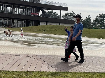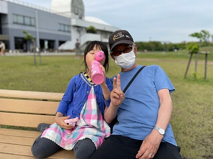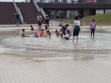 心配していた雨が上がり、千葉県の(東京から)2番目に近い船橋市の海浜公園でバーベキューを楽しみました。 そのあと、みいちゃんと噴水広場へ。