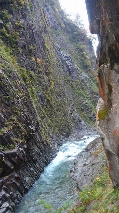 | 清津峡渓谷トンネル 2018年10月24日 またもや越後の国に向かいます。 ![]() 日本三大峡谷の一つである清津峡渓谷(十日町市)を観賞するために造られたトンネルに入りました。以前に、落石事故があったためだそうです。トンネルの長さは往復で1.5km なり。 ![]() ![]() ![]() ![]() 弟3見晴所への道。インスタバエを狙っているのでしょうか? ![]() 最奥にある趣向を凝らしてあるポイントなんですが、残念ながら、紅葉を見ることができませんでした。 パノラマステーションの上半分は、これまでと同様外の景色を眺めるところです。下半分は、渓谷からわき出る沢水を張ってあります。 |