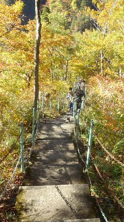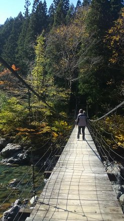 | 秋山郷 2018年10月26日 今回の旅のメインである秋山郷に向かいました。 津南町(新潟県)および栄村(長野県)にまたがる中津川渓谷の集落をまとめて秋山郷とよぶそうです。 すっかり晴れ渡った日でしたから、実に素晴らしい紅葉に出逢うことが出来ました。 車窓から眺める山々の紅葉が見事でした。以前に新潟県、群馬県を訪れたときよりも断然素晴らしい紅葉でした。 今回は3日とも晴れだったし、紅葉の度合いにも恵まれたようです。東に苗場山、西に鳥甲山があります。 ![]() 津南見玉公園 苗場山の溶岩が造り出した柱状節理がよく見えるところにガイドさんが案内してくれました。時おり石がガラガラと音をたてて崩れ落ちることから、「石落とし」と呼ばれているそうです。 ![]() ![]() 滝道のぼるくんたちの群れです。行きはよいよい帰りはこわい、という所へ連れていかれます。 ![]() ![]() ![]() ![]() ![]() 見倉橋を渡ります。つり橋は横揺れが大きくて、へっぴり腰になりますが、帰りはマシになりました。 |